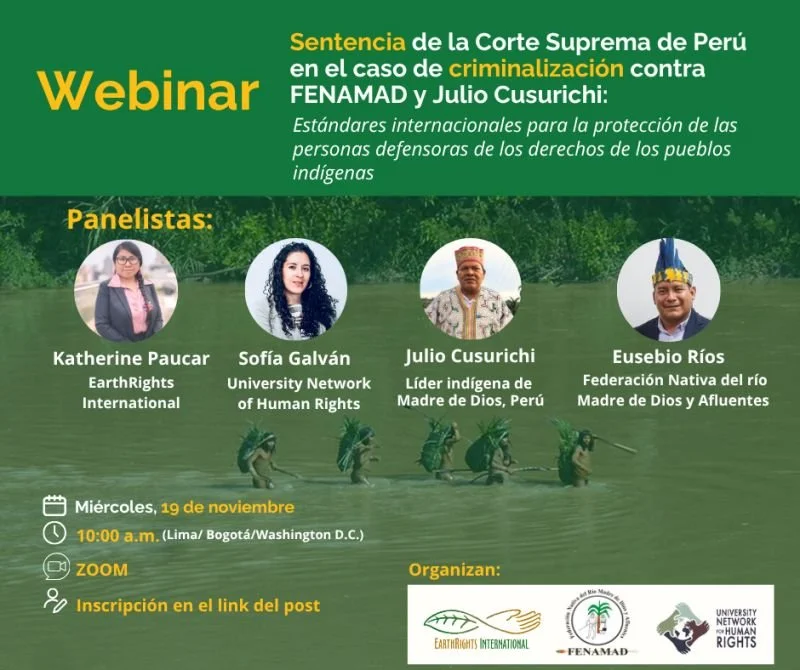 In light of this success, our Associate Director, Sofía Galván, will lead a discussion on the role of international standards in defending the rights of Indigenous communities on November 19, alongside EarthRights International and FENAMAD.